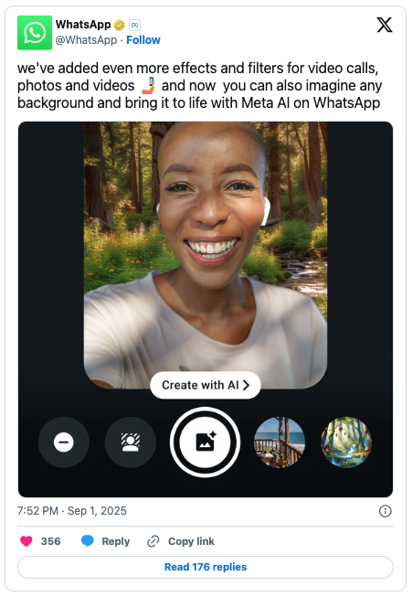 As detailed earlier, you can now use Meta AI to create unique backgrounds for your video calls, and add AI backgrounds when taking photos and videos directly in chats.