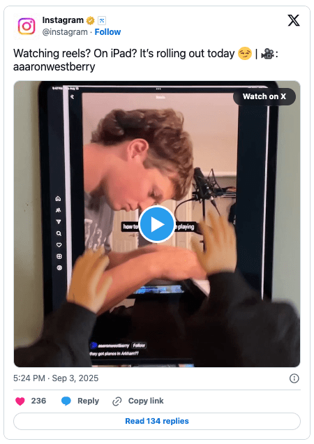 After many years of requests from users, Instagram has finally launched a dedicated iPad version of the app, designed specifically for the tablet’s larger screen. Explaining the app’s design, Instagram said: “We wanted to take advantage of the bigger screen to give people more features with fewer taps, while keeping it simple. We’ve made it easier to catch up on your messages and notifications with layouts that display both tabs. When you watch Reels, you can expand the comments while the Reel stays at full size, making it easy to catch up on the best reactions without missing a moment.”