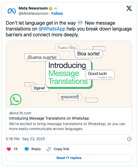 WhatsApp is rolling out a new message translation tool that it hopes will “help break down language barriers and allow users to connect more deeply with loved ones and communities around the globe.”