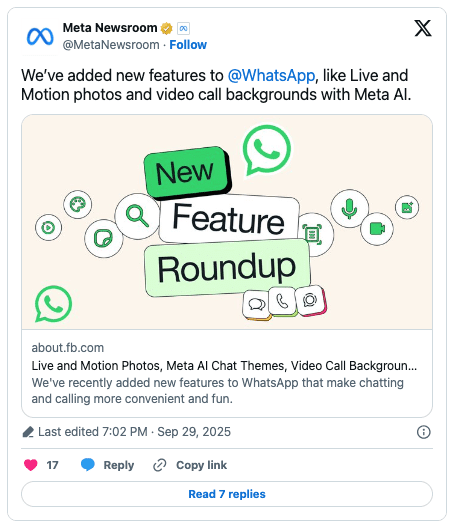 WhatsApp also released its monthly feature roundup, outlining all of its recent updates and new tools: