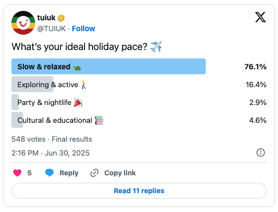 Your social pages shouldn’t just be a place for directly promoting bookings - you should also incorporate fun, interactive content into your strategy. Polls are a great way to make your audience feel involved and to hear their thoughts about various travel-related topics, which can ultimately help you shape future business decisions. You can create polls on X and Instagram Stories.